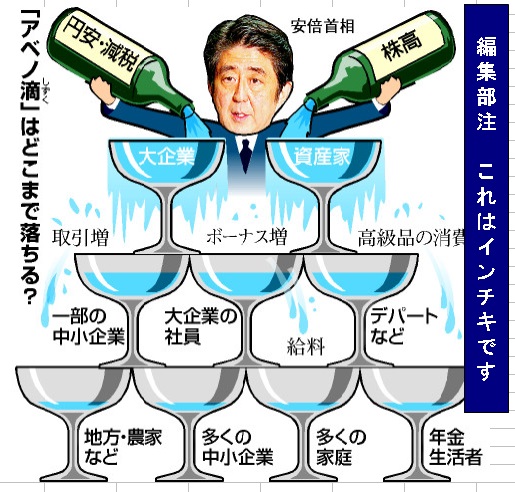 れも安倍首相)というアベノミクスは、トリクルダウン理論にもとづく典型的な企業優遇政策である。