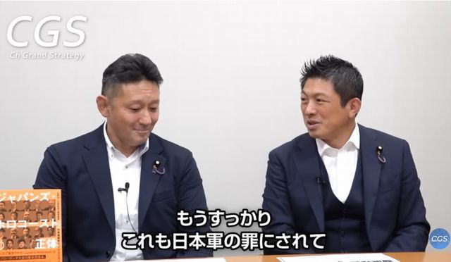同党の神谷宗幣代表が主宰するネット番組に出演した際も「(遺)骨もどこにあるか分からないし、証拠だという写真も全部捏造。何も証拠もないような状況で、あったと断定するにはおかしいのではないか」と語った(8/8配信)。