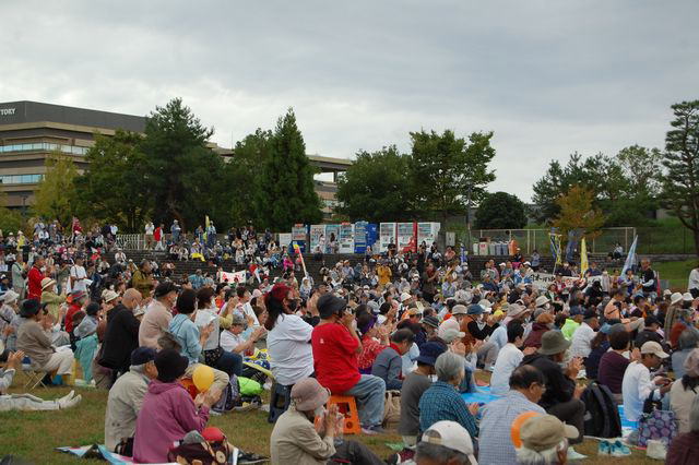 10月19日、陸上自衛隊祝園(ほうその)分屯地のある京都・精華町で「私たちは二度と戦争をしたくない!平和でこそ文化は香り立つ!祝園全国集会」が開催され、約2700人が参加した。