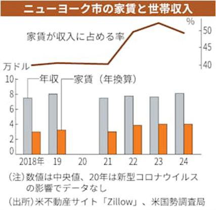 最も共感を呼んだ家賃凍結。10人に1人が億万長者というマンハッタン地区では1ベッドルームマンション(日本の1LDK相当)で平均月額5000ドル(75万円)を超える。最も安いスタテンアイランド地区でも平均1700ドル(25万円)。収入の半分が家賃に消える。
