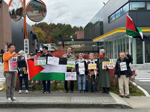 ZENKO(平和と民主主義をつくる全国交歓会)は11月5日、全国10都道府県のファナック本社・事業所に対し120人以上で一斉抗議要請行動を展開した。国連人権理事会アルバネーゼ報告書で武器製造協力を名指し批判されながら回答もせず事実を認めないファナックを各地で追及し、厳しく抗議した。首都圏では、東京駅前宣伝行動を皮切りに、日本政府・厚生労働省との交渉、GPIF(年金積立金管理運用独立行政法人)抗議、イスラエル・米国・ロシア・ウクライナ各大使館抗議や要請。行動はSNSで発信され、YouTubeの視聴も直後で6000に達し、反響を広げた。(6面に関連記事)