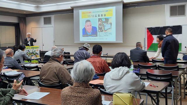 イスラエルの虐殺・占領に非暴力で闘うPWSU(パレスチナ労働者闘争ユニオン)の委員長であり、PPSF(パレスチナ人民闘争戦線)政治局員のモハマド・アローシュさんが、ZENKO(平和と民主主義をめざす全国交歓会)の招請で来日。11月13日広島、15日神奈川、16日大阪で連帯を訴え、共感を広げた。