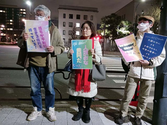 誰もが平和に生きる権利を/軍事同盟より市民の連帯を/武力ではなく対話による解決を/官邸前スタンディング