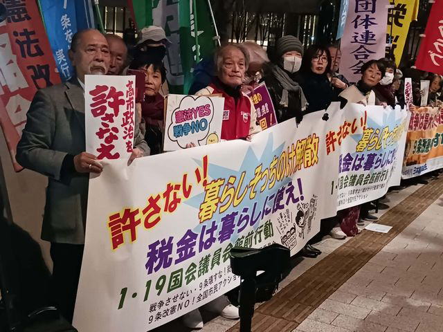 1月19日、高市首相の解散表明会見と時を同じくして今年初の総がかり国会議員会館前行動が行われ、700人が結集した。