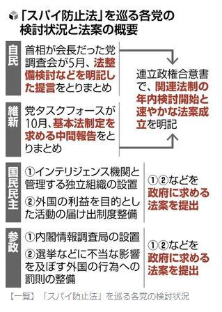 参政党、国民民主党は昨年、こうした内容も含めた「スパイ防止法案」をそれぞれが提出している。力点は違うものの、自民・維新、参政、国民と「スパイ防止法」が必要とする点では一致している。反対勢力はごく少数でしかない。