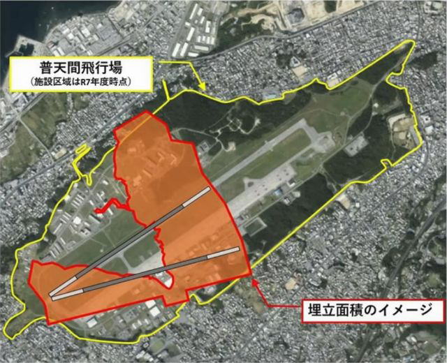 日本政府は航空自衛隊築城(ついき)基地(福岡)の滑走路を2700bへ延長(工事中)し、普天間規模の滑走路を用意している。新田原基地(宮崎)は延長済みだ。