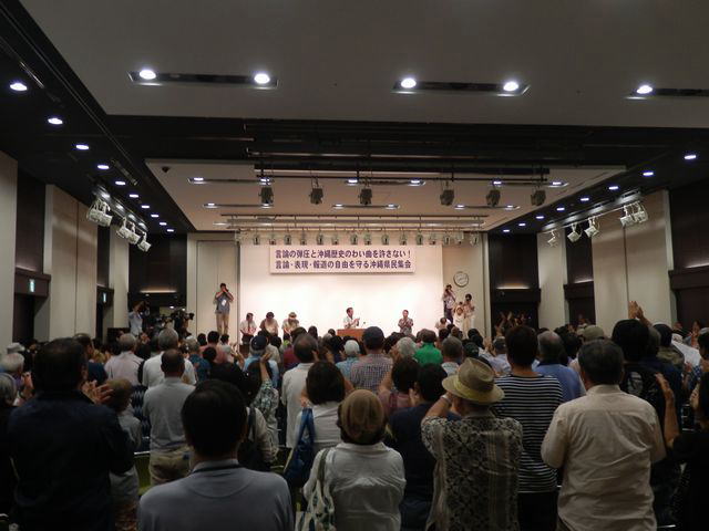 百田暴言事件で明らかになったことは、安倍政権と安倍に近い自民党若手議員が本気で翁長県政をつぶそうとしていることだ。何度も繰り返されてきた一言だけの暴言事件ではない。主催した安倍チルドレンと出席した議員らは百田講演に誰一人異論も反論も唱えず、さらなる暴言を引き出す質問を続けていた。連中はこうした言動を日常的に行っている。安倍政権に真っ向から反旗を翻すオール沖縄が憎くて仕方がない、左翼の新聞に洗脳されているからつぶさなければならない≠ニ本音が出た。
