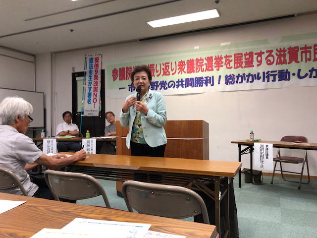 9月19日、滋賀県守山市でZENKO(平和と民主主義をめざす全国交歓会)・滋賀も事務局団体である「市民と野党の共闘勝利!総がかり行動・しが」が呼びかけた「参議院選挙を振り返り衆議院選挙を展望する滋賀市民集会」が開催されました。