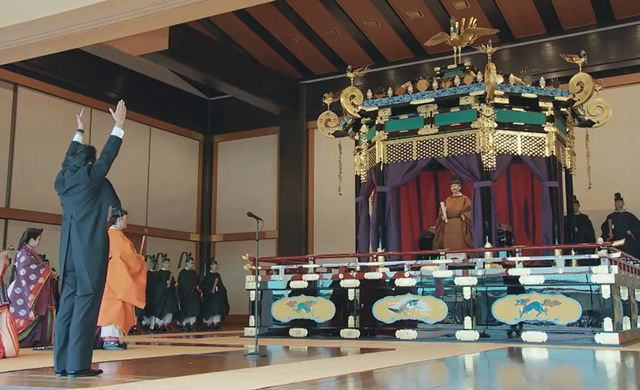 まず「即位礼正殿の儀」では、新天皇は天皇専用の衣装をまとい「高御座(たかみくら)」にのぼり、一段高いところから国民の代表者たちに即位を宣言する。天皇は「国民とともにある」のではない。つねに国民を超えたところにいるのである。「高御座」は神話に由来する天皇の「玉座」を表し、天皇と神話の神々との繋がりを示すものである。これは今回わざわざ京都御所から運び込まれた。