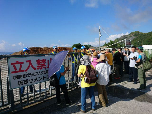 その後、安和桟橋前に移動したが、警備員が無表情に立っているだけ。赤土に覆いもせず放置してあるのは環境汚染にもつながる法律違反だ、と怒りを新たにした。