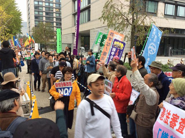 10月19日、「憲法審査会始動させるな!辺野古新基地建設やめろ!『嫌韓』あおるな!東北アジアに平和と友好!」と国会議員会館前行動が開かれ、2500人が集まった。
