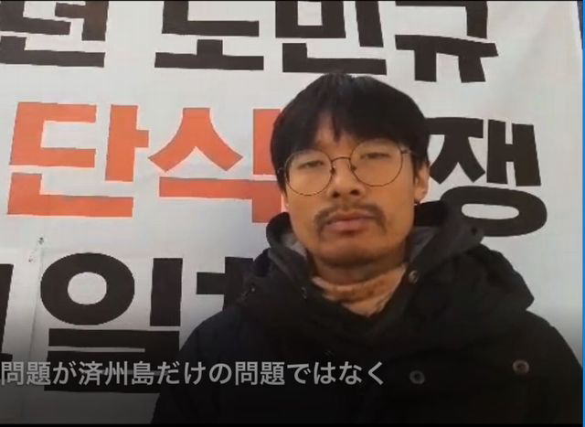 済州(チェジュ)島から環境部(日本の環境省にあたる)前に来て断食籠城中のノ・ミンギュです。