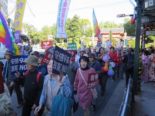 京都でも11月2日、「生かそう憲法 守ろう9条 憲法集会in京都」が憲法9条京都の会と安倍9条改憲NO!全国市民アクション・京都の共催で開かれ、1700人が参加。ウォークで「9条改憲に終止符を」とアピールした。