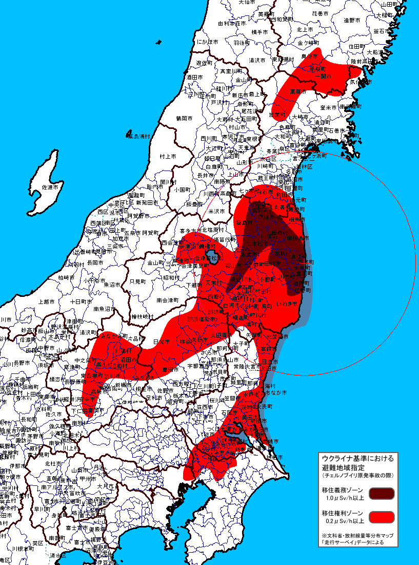 だが年20_シーベルトは放射線業務従事者の被ばく限度と同じであり、チェルノブイリが避難基準とした年5_シーベルトと比べても高過ぎる。そもそも1_シーベルトを超える被ばくを甘受する場合は、それに見合う直接的な便益がなければならない(正当化の原則)。害しか受けない市民に1_シーベルト以上の被ばくを強要することは全く不当である。少なくとも1_シーベルトを超える地域については避難を選択する権利が認められなければならない。