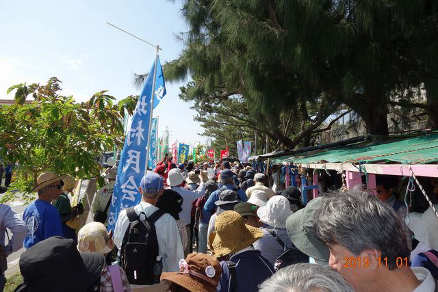 11月21日、オール沖縄「辺野古県民大行動」が平日実施となって初めての第3木曜日。640人が集まりテント村は人であふれた。「世界平和アピール七人委員会」(1955年湯川秀樹らで結成されてた知識人による平和団体)メンバーも激励にゲート前を訪れた。委員の一人、慶応大学名誉教授の小沼通二さんが「30年前、冷戦も終わり、ベルリンの壁もなくなった。この基地のフェンスも必ずなくなる」と訴え。県民投票を実現する会代表をつとめた元山仁士郎さんは午後の七人委員会主催シンポジウムで「投票結果がふみにじられた。日本は本当に平和憲法や民主主義を大事にしている国なのか」と憤った。