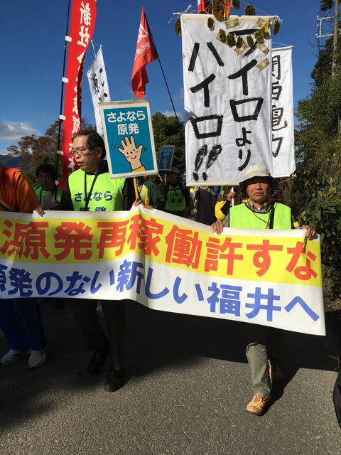 「原発動かすな!実行委員会@関西・福井」が呼びかけた「超危険 老朽原発動かすな」リレーデモは、関電包囲大集会(12月8日14時〜関電本店前)に向けて11月23日、福井・高浜原発展望所からゲート前へ出発。ZENKO関電前プロジェクトも連帯参加した(写真提供も同)。