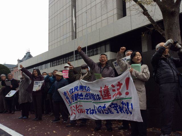 現地では「ふくいち周辺環境放射線モニタリングプロジェクト」が測定・調査を継続してきた。同プロジェクトの一員で原告の平田安子さんは「屋内と屋外の空間線量率が変わらなくなっている。国が使う遮蔽係数は0・4だが、実態は0・81。現在も相当多くの地点で1時間あたり1μSvを超える」と訴えた。