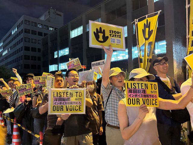 「岸田総理に“史上最多オンライン署名”を届けようアクション」に1000人が結集。集会終了時の午後8時半には、SNSのインボイス反対署名は52万3986筆に達した(9月25日 首相官邸前、詳報次号)。