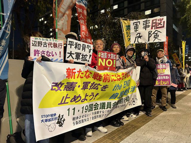 総がかり行動実行委員会は、総選挙後初めての「新たな戦前にはさせない!改憲・軍拡を止めよう!theEND自民党政治11・19議員会館前行動」を行い、700人が集結した。
