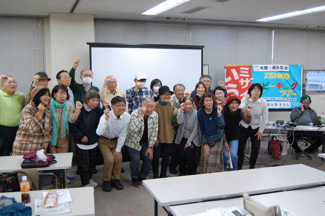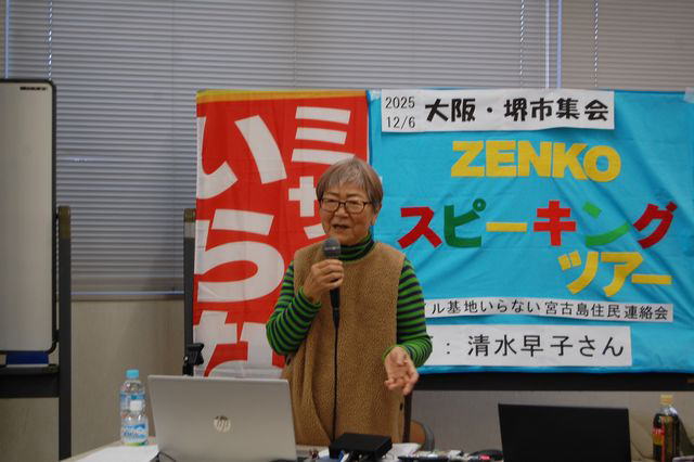 12月6日堺集会は、来阪した「ミサイル基地いらない宮古島住民連絡会」清水早子さんが状況を報告。