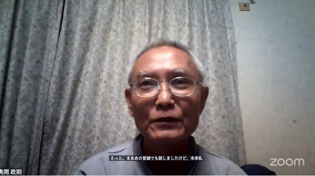5日の京都集会では、沖縄ドローンプロジェクトの奥間政則さんが名護市辺野古新基地工事の行き詰まりと阻止への展望を語った。
