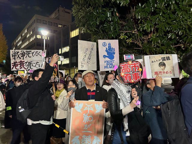 首相官邸前で高市発言に抗議する大学生は「周りに高市首相の答弁を支持する人が多い」と話す(TBS『報道特集』/11月29日放送回)。「顔を出して取材に応じ『発言撤回』と訴えるのが怖い」「こうやって自由に声をあげることが今後できなくなっていったらどうしよう」など、不安を漏らす参加者もいた。