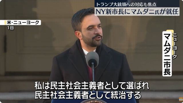 グローバル資本主義の中心といえるニューヨーク市に民主主義的社会主義者の市長が誕生した。マムダニはDSA(アメリカ民主主義的社会主義者)のメンバーで、この選挙戦で資本に切り込む政策を掲げた。高騰を続ける家賃の凍結、保育・公共交通バスの無料化、公設マーケット設置などだ。政策に必要な財源は富裕層・資本家への課税でつくる。