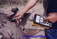 専門家に聞いてみた。ウランの出す放射線は、アルファ線だ。持参したガイガーカウンタにはベータ線・ガンマ線を測定する計測管がついていた。計器が反応するのは、アルファ線を浴びた他の金属が放射能を持ったからだ。粉塵となって飛び散ったウラン酸化物粒子が放出するアルファ線を計ることはきわめて困難なことだとわかった。