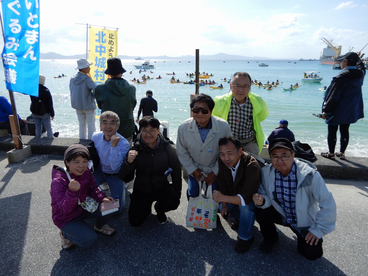 土砂搬出作業阻止への「安和(あわ)海上大行動-浜集会」に韓国ノ・ミンギュさんらZENKOスピーキングツアー沖縄集会参加者も駆け付けた。
