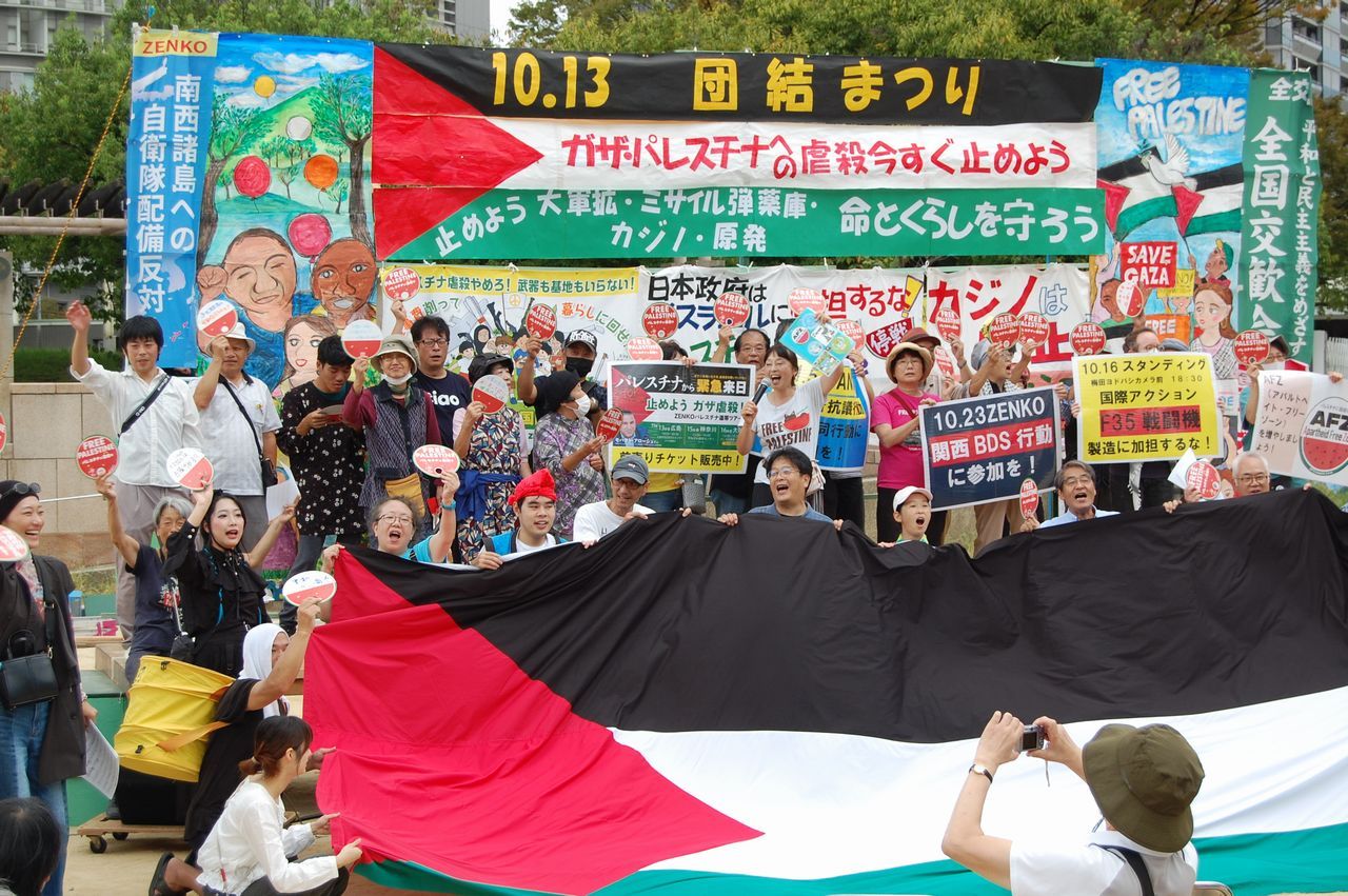 ●停戦実現かちとった市民の力で/パレスチナ解放 世界の平和へ/10・13団結まつりが発信